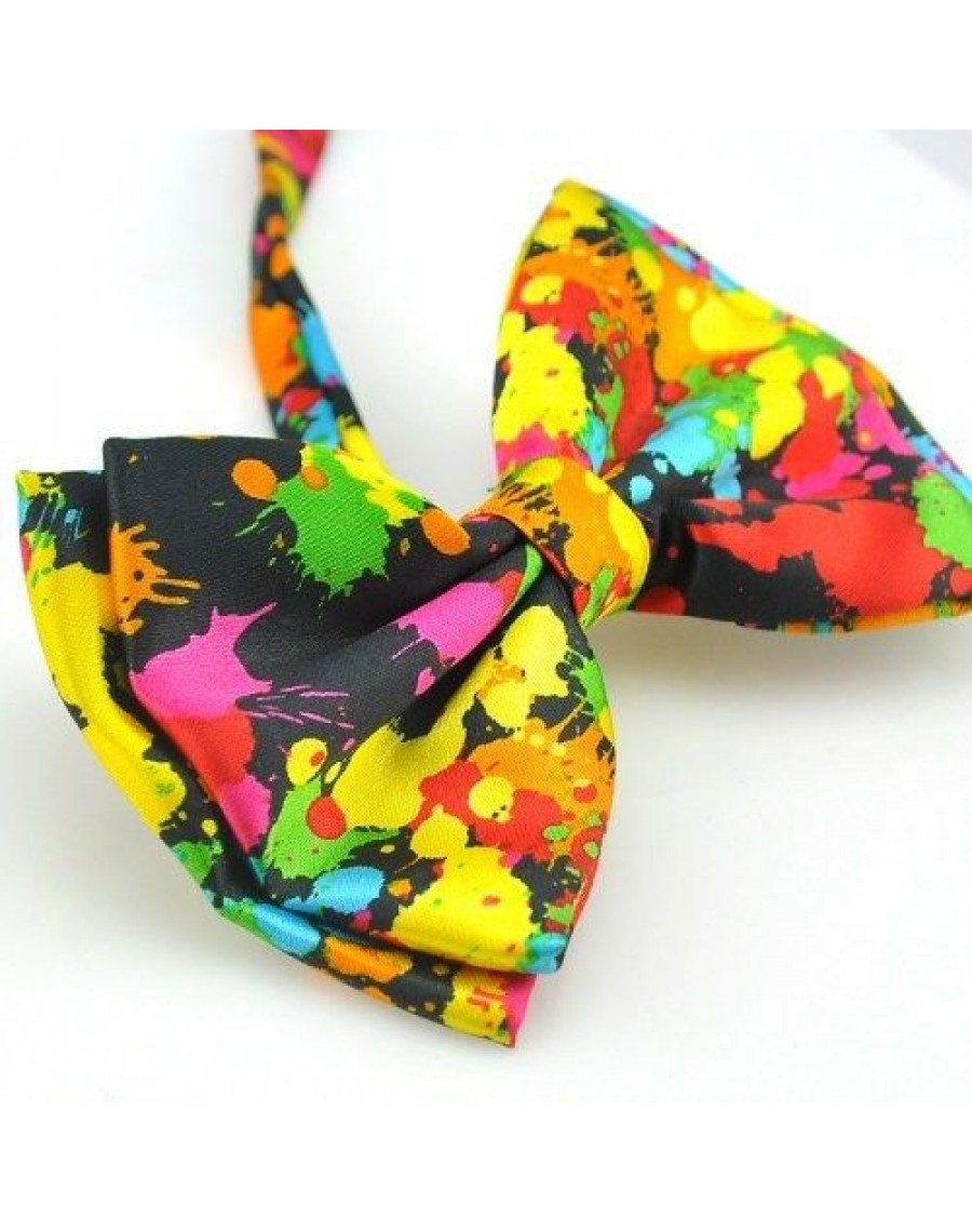 Paint splash bow tie is a multicoloured pre tied bow tie with plastic clasp clip fastening