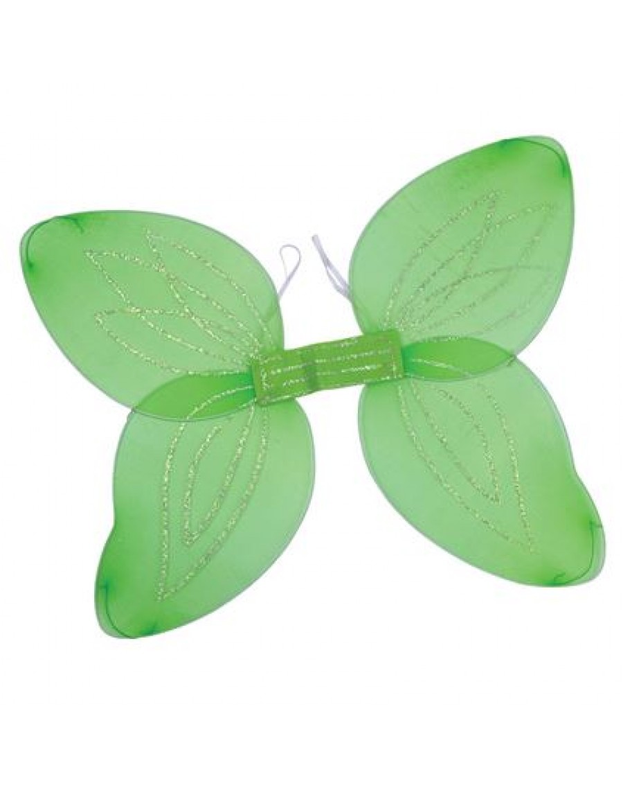 Green net pixie wings with silver glitter design with elasticated arm loops