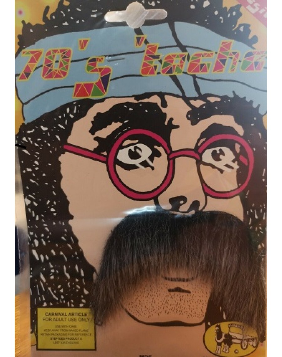This grey black mixed 70s hippy moustache comes in 4 colours and is self adhesive.