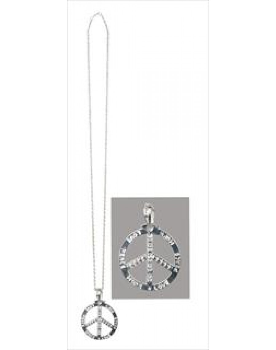 A deluxe metal silver coloured hippy medallion inset with diamontes on a silver coloured linked chain
