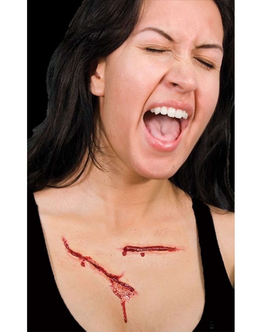 Combine these slash latex prosthetics with other accessories blood , face paint or other prosthetics to enhance the effect or maybe a whole costume